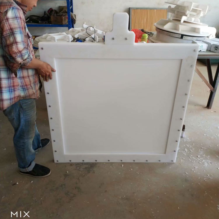 复合材料闸门,由专门研制的复合材料制成,在研制这种材料之初,就重点考虑的其质量比率,耐腐蚀性能,强度和价格因素,由此生产出的闸门,相比传统铸铁闸门和型钢闸门,其耐腐蚀性更好,质量比率低,小开启压力只需0.0003MPa,远远优于传统闸门,与不锈钢拍门相比,其低廉的造价更是具有决定性的优势,复合材料闸门是替代传